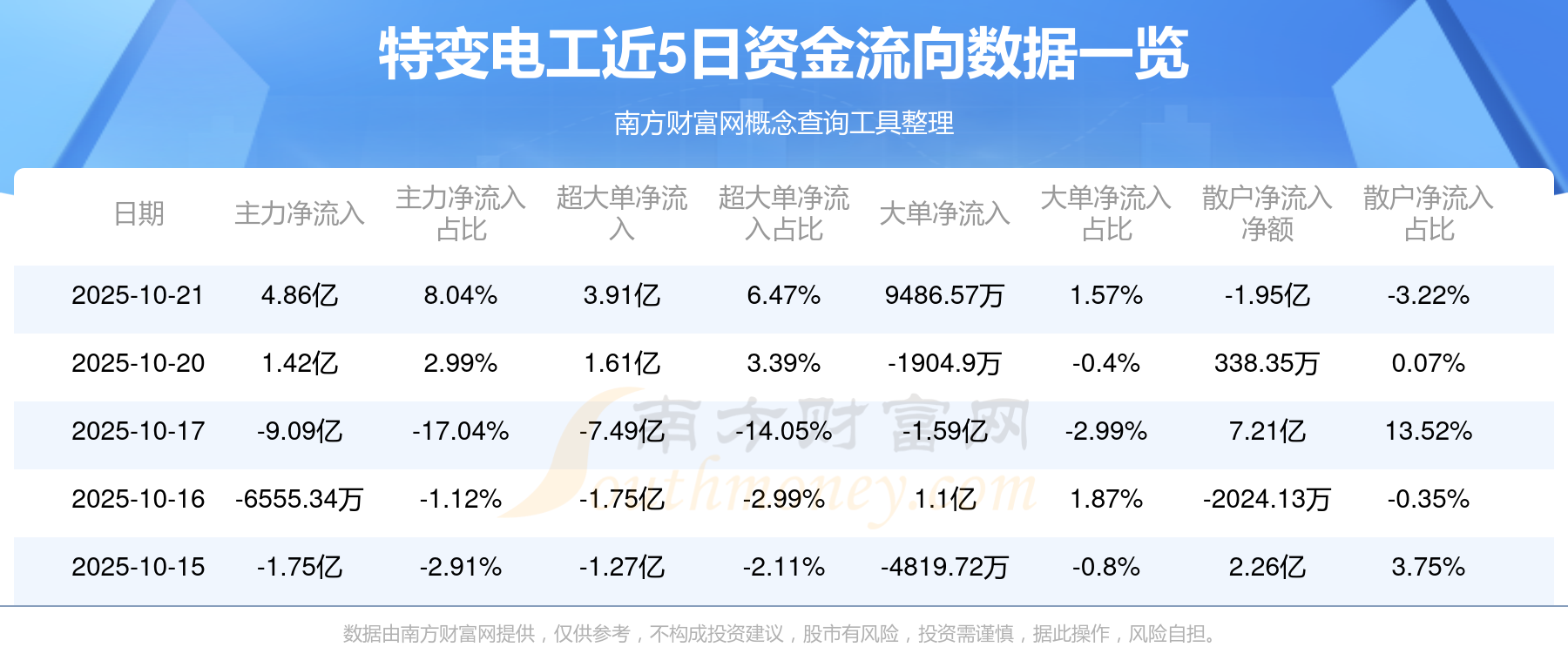 10月21日该股主力资金净流入4.86亿元,超大单资金净流入3.91亿元,大单资金净流入9486.57万元,中单资金净流出2.91亿元,散户资金净流出1.95亿元。