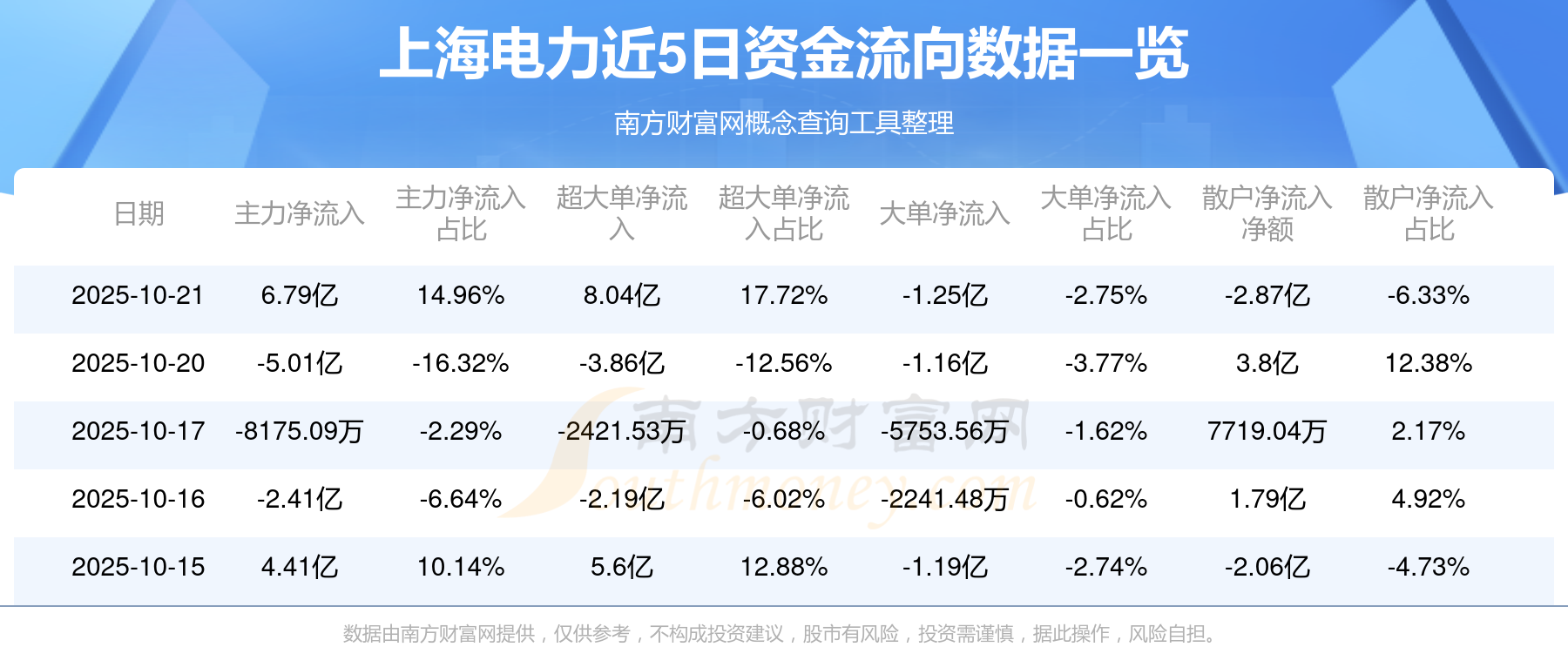 10月21日消息,上海电力主力净流入6.79亿元,超大单净流入8.04亿元,散户净流出2.87亿元。