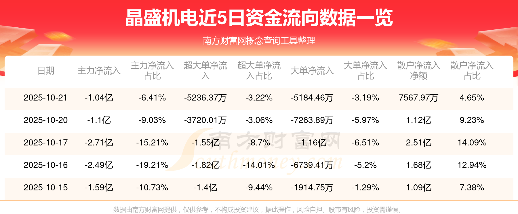 10月21日消息,晶盛机电资金净流出1.04亿元,超大单净流出5236.37万元,换手率3.25%,成交金额16.26亿元。