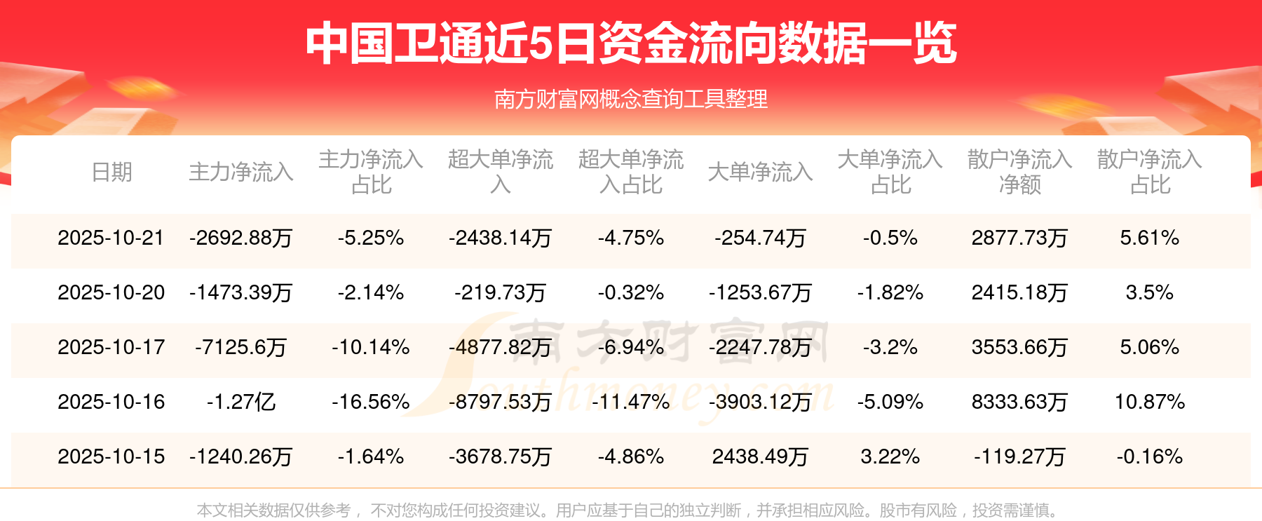 10月17日消息,中国卫通7日内股价下跌2.43%,最新报21.000元,市盈率为195.17。