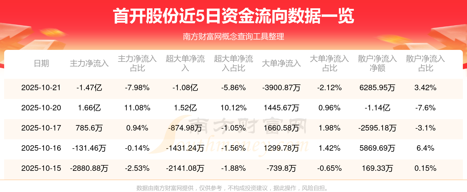 近5日资金流向一览见下表: