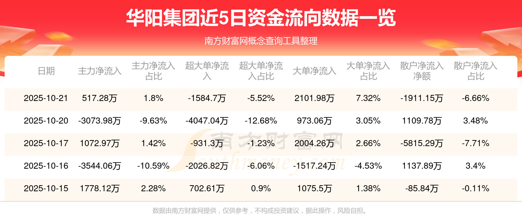 近5日资金流向一览见下表: