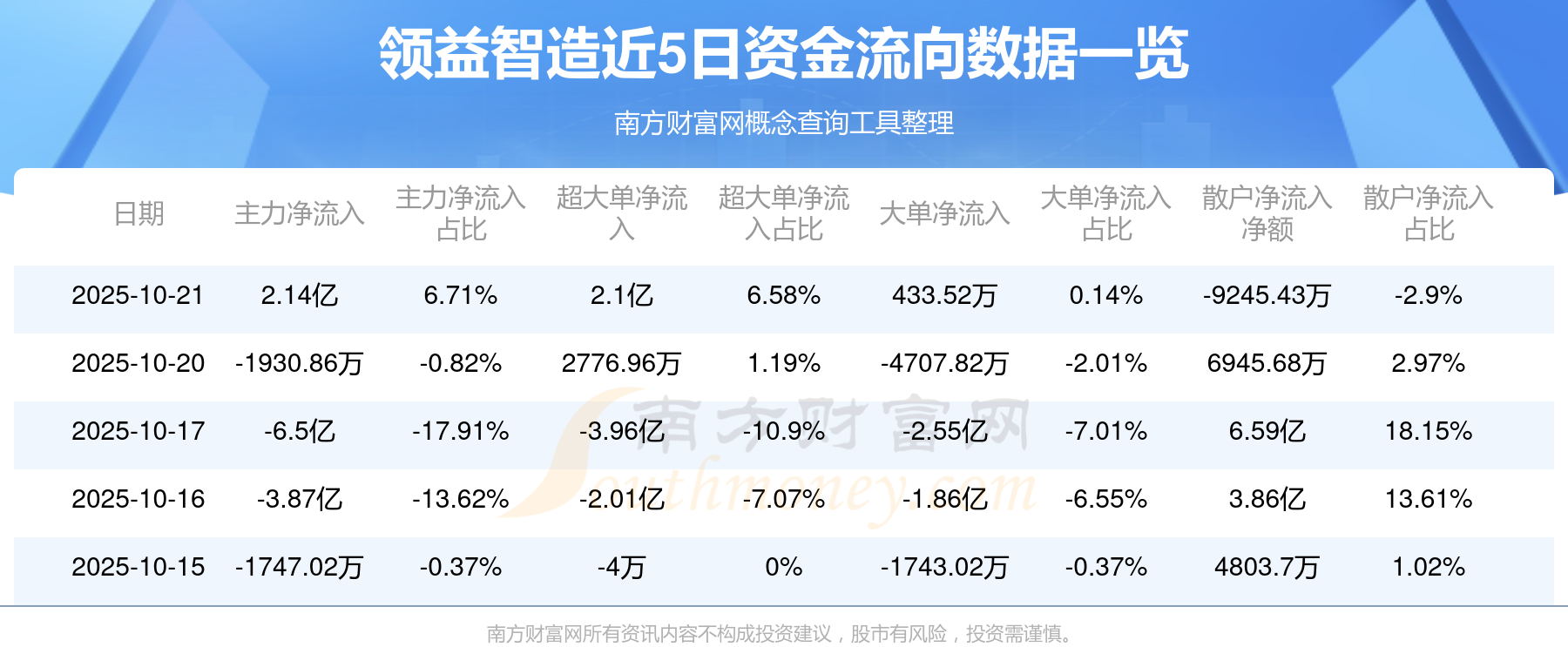 10月21日消息,领益智造主力净流入2.14亿元,超大单净流入2.1亿元,散户净流出9245.43万元。