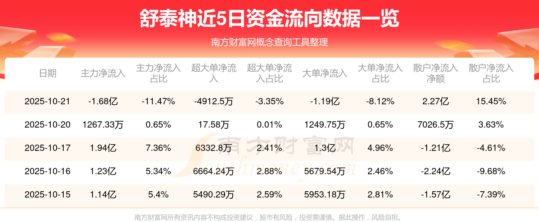 10月21日该股主力净入-1.68亿元,其中资金流入方面:超大单净入8889.57万元,大单净入3.27亿元,中单净入4.78亿元,散户净入5.46亿元;资金流出方面:超大单净出1.38亿元,大单净出4.46亿元,中单净出5.37亿元,散户净出3.19亿元。