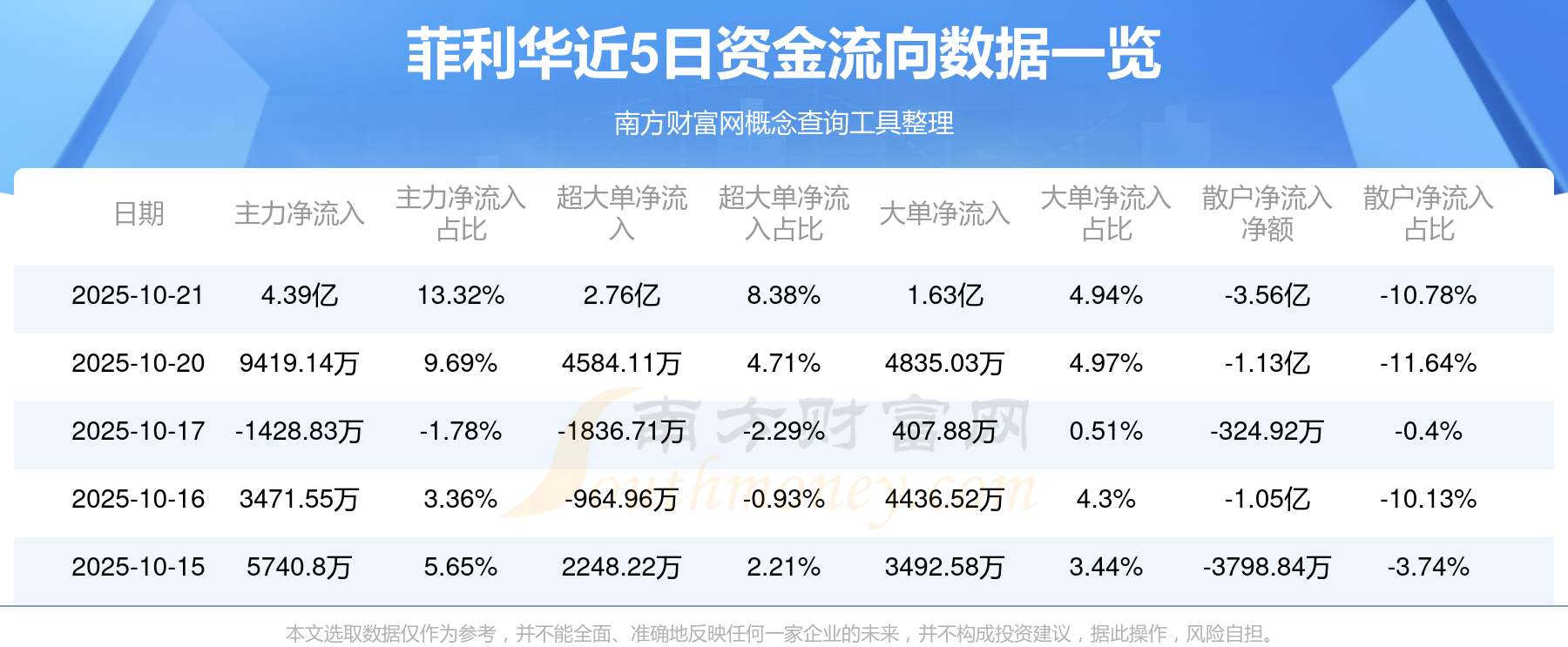 10月21日消息,菲利华主力资金净流入4.39亿元,超大单资金净流入2.76亿元,散户资金净流出3.56亿元。
