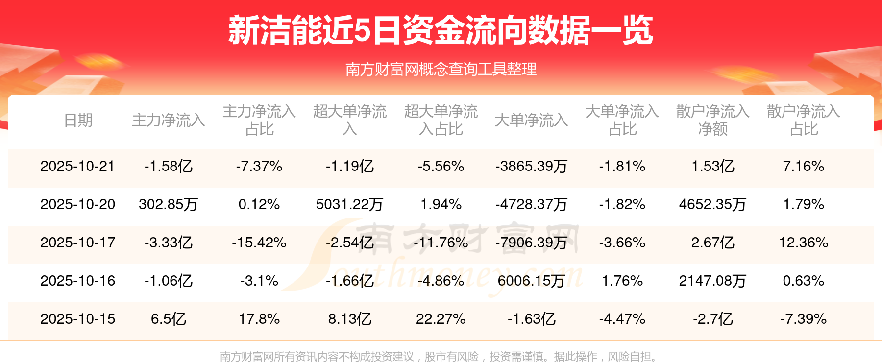 10月21日消息,新洁能主力资金净流出1.58亿元,超大单资金净流出1.19亿元,散户资金净流入1.53亿元。