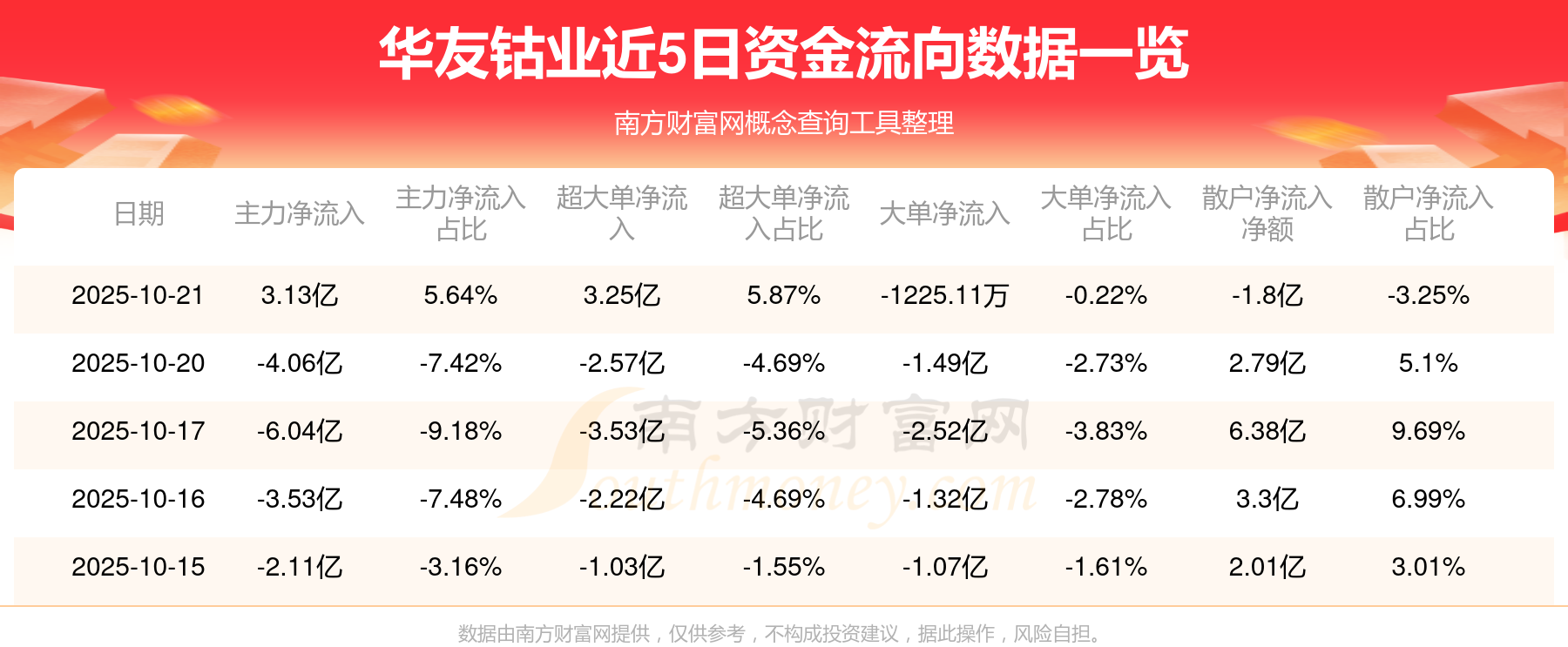 10月21日消息,华友钴业10月21日主力资金净流入3.13亿元,超大单资金净流入3.25亿元,大单资金净流出1225.11万元,散户资金净流出1.8亿元。