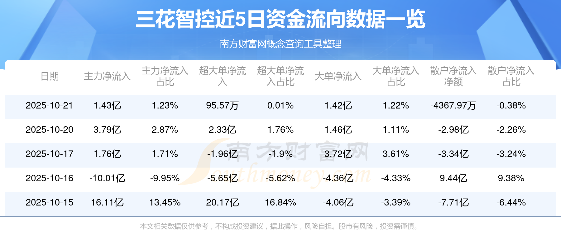 资金流向数据方面,10月21日主力资金净流流入1.43亿元,超大单资金净流入95.57万元,大单资金净流入1.42亿元,散户资金净流出4367.97万元。