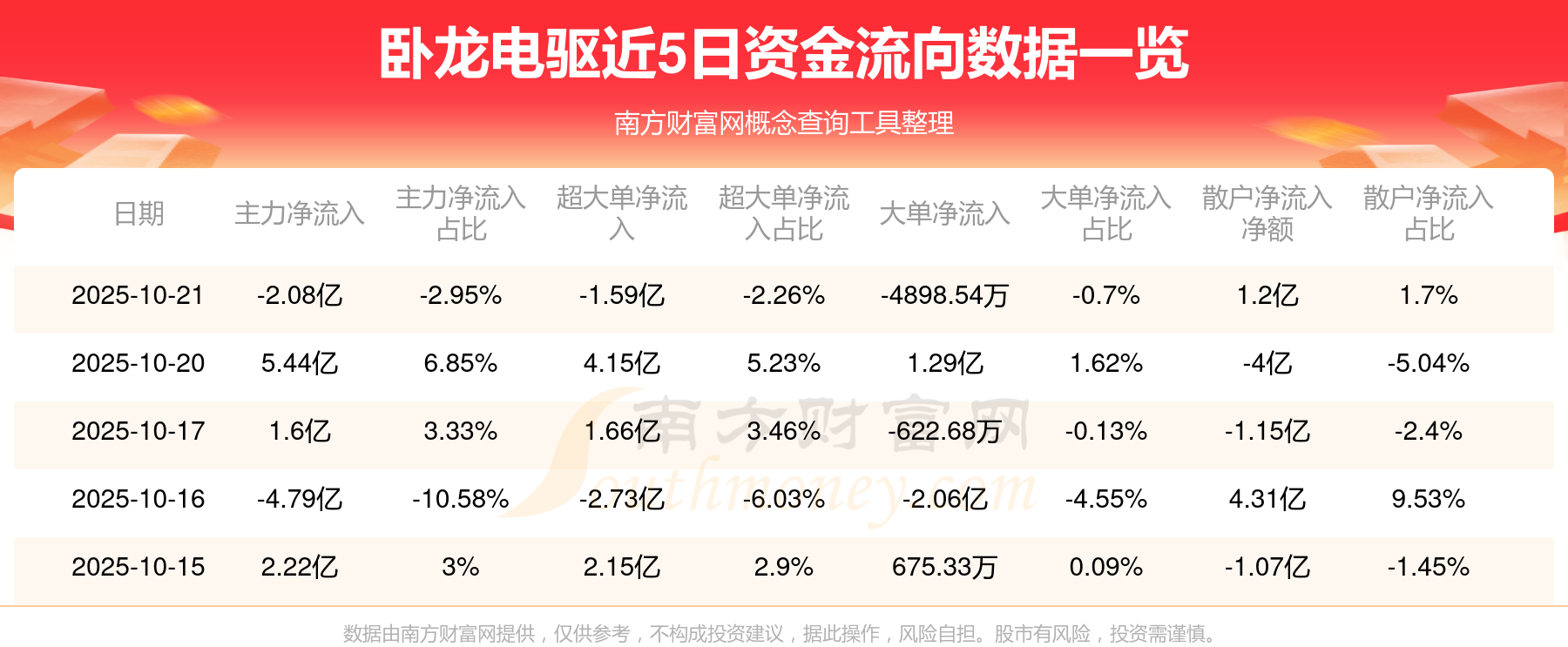 10月21日消息,卧龙电驱资金净流出2.08亿元,超大单净流出1.59亿元,换手率6.35%,成交金额48.35亿元。