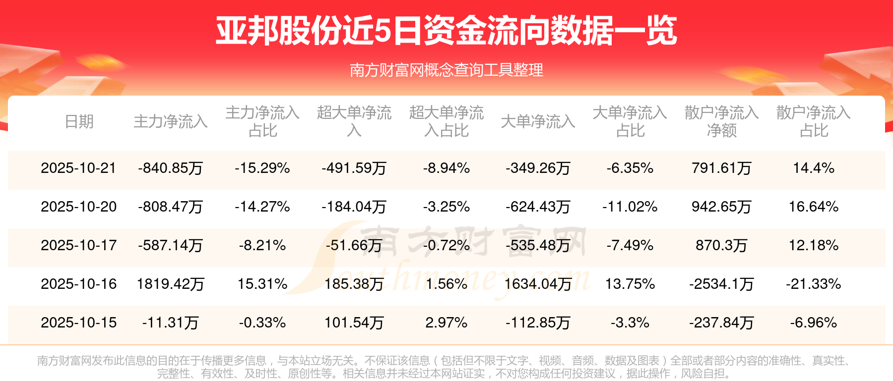 10月21日该股主力净流出840.85万元,超大单净流出491.59万元,大单净流出349.26万元,中单净流入49.23万元,散户净流入791.61万元。