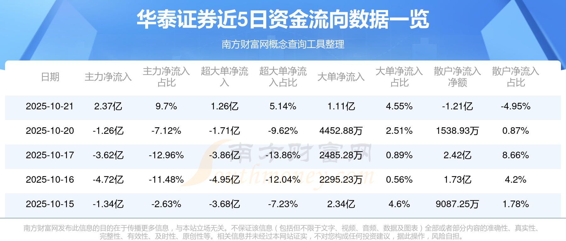 近5日资金流向一览见下表: