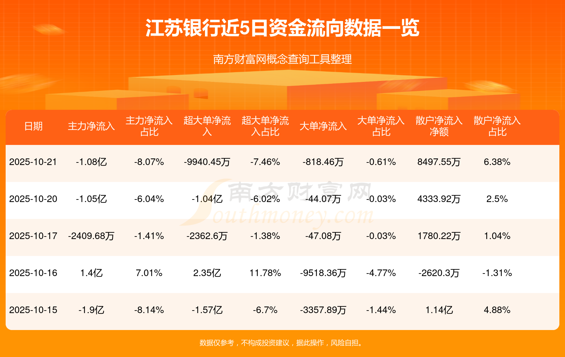资金流向数据方面,10月21日主力资金净流流出1.08亿元,超大单资金净流出9940.45万元,大单资金净流出818.46万元,散户资金净流入8497.55万元。