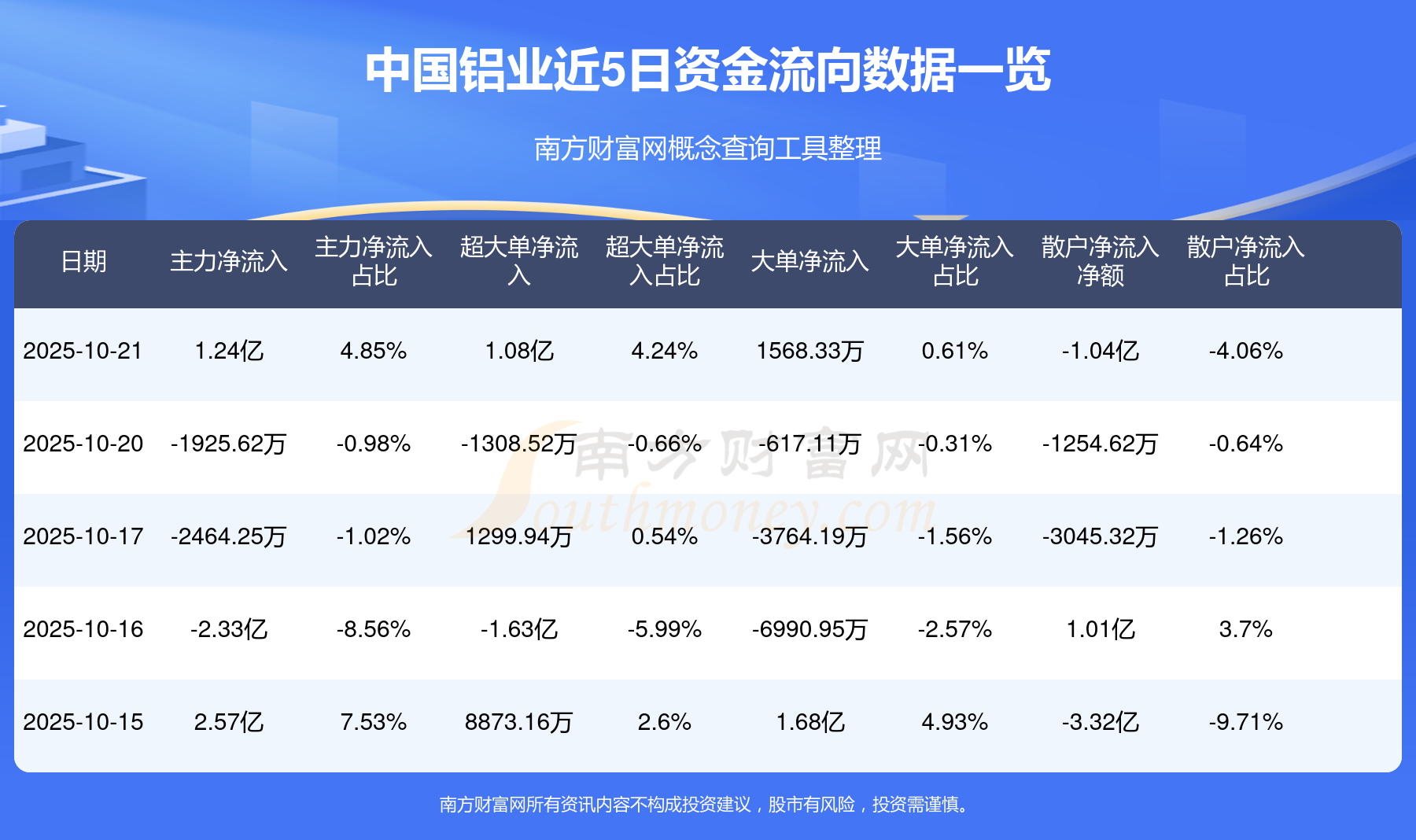 资金流向数据方面,10月21日主力资金净流流入1.24亿元,超大单资金净流入1.08亿元,大单资金净流入1568.33万元,散户资金净流出1.04亿元。