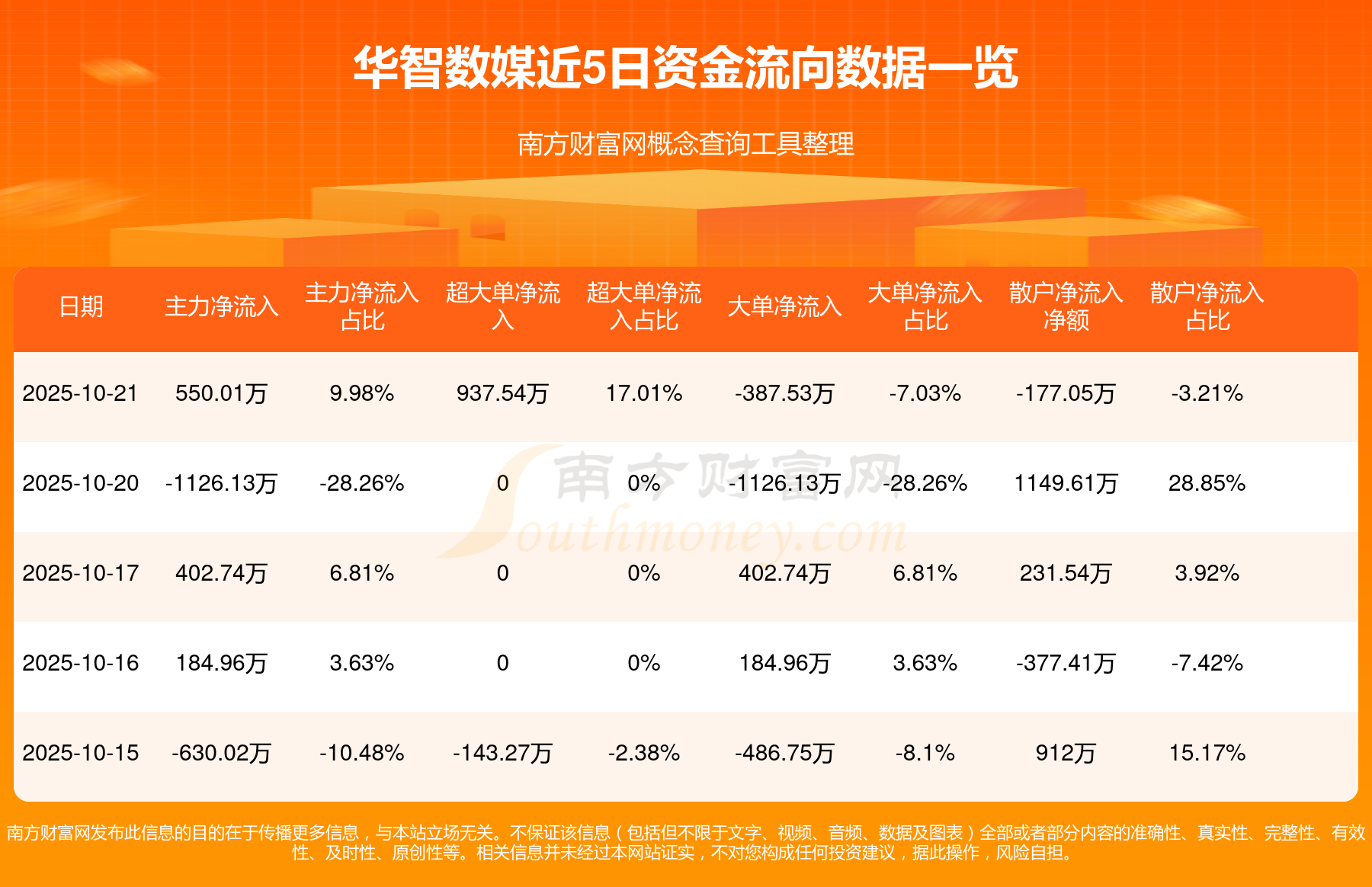 近5日资金流向一览见下表: