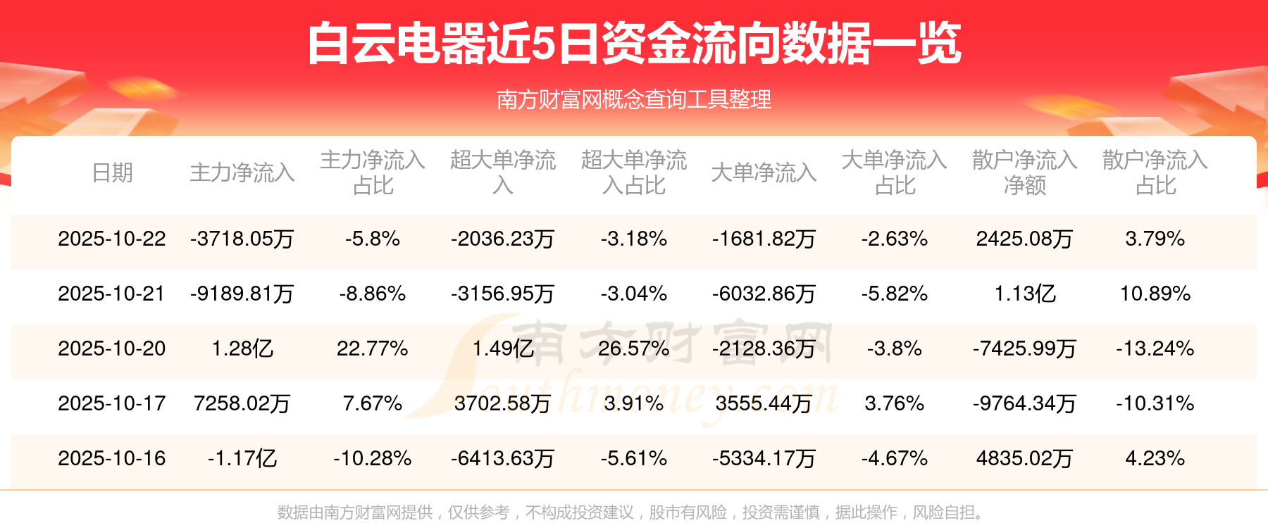 近5日资金流向一览见下表: