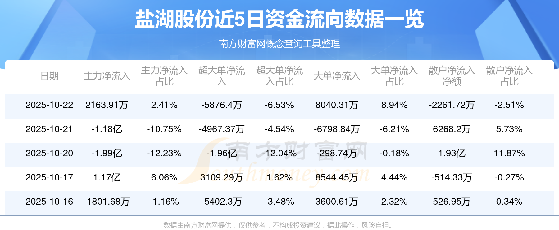 10月22日消息,盐湖股份资金净流入2163.91万元,超大单净流出5876.4万元,换手率0.78%,成交金额9亿元。