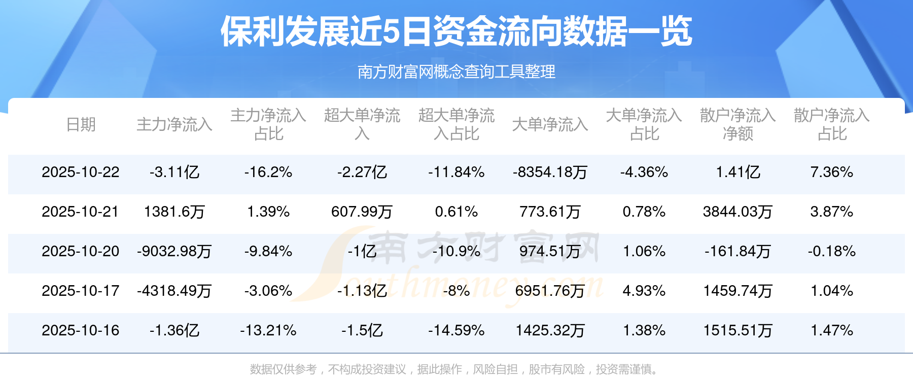 10月22日消息,保利发展主力资金净流出3.11亿元,超大单资金净流出2.27亿元,散户资金净流入1.41亿元。
