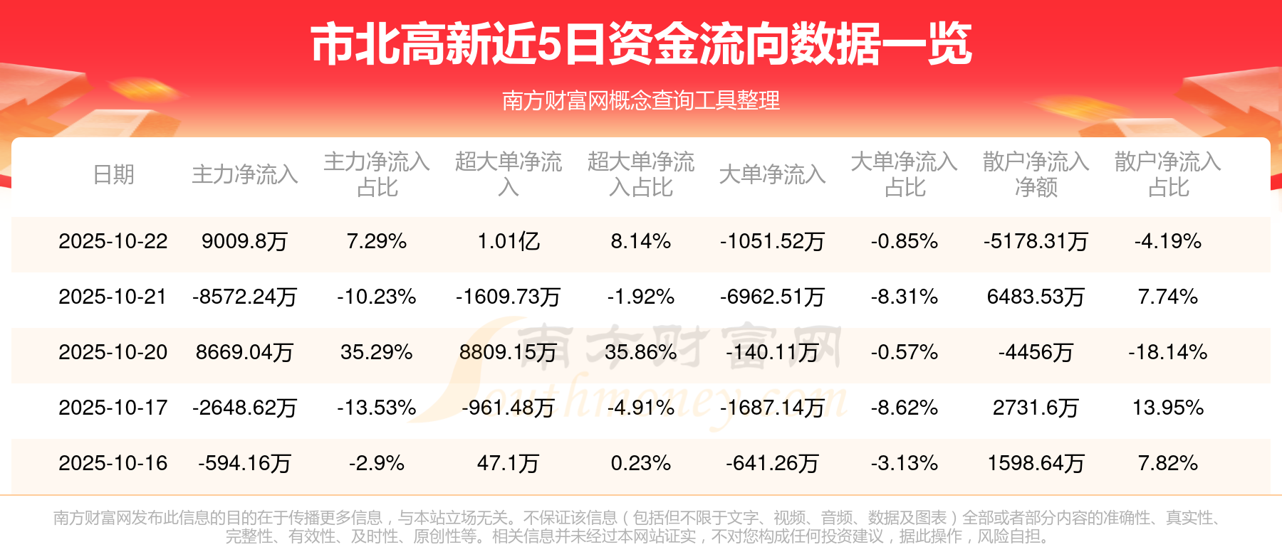 10月22日该股主力净流入9009.8万元,超大单净流入1.01亿元,大单净流出1051.52万元,中单净流出3831.49万元,散户净流出5178.31万元。
