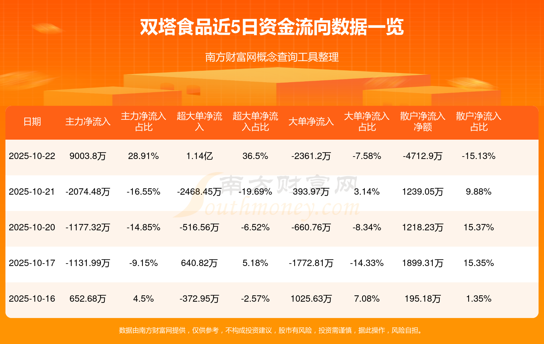 10月22日,双塔食品开盘报价6.37元,收盘于6.390元,涨9.98%。今年来涨幅上涨15.34%,总市值为78.83亿元。