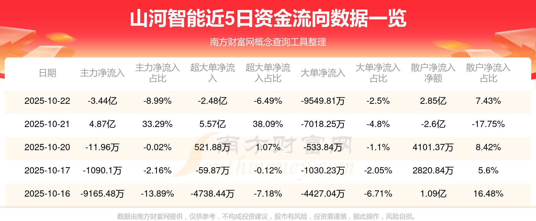 10月22日消息,山河智能10月22日主力净流出3.44亿元,超大单净流出2.48亿元,大单净流出9549.81万元,散户净流入2.85亿元。