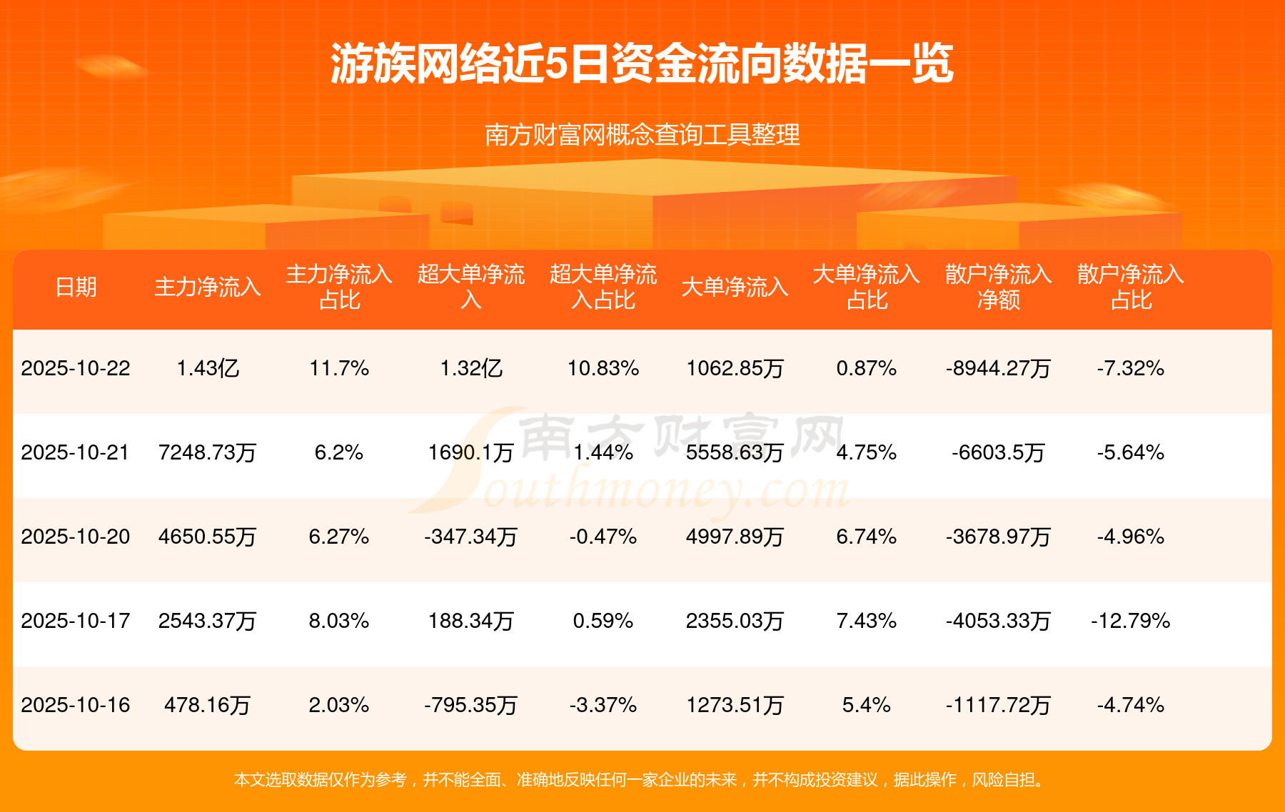 资金流向数据方面,10月22日主力资金净流流入1.43亿元,超大单资金净流入1.32亿元,大单资金净流入1062.85万元,散户资金净流出8944.27万元。