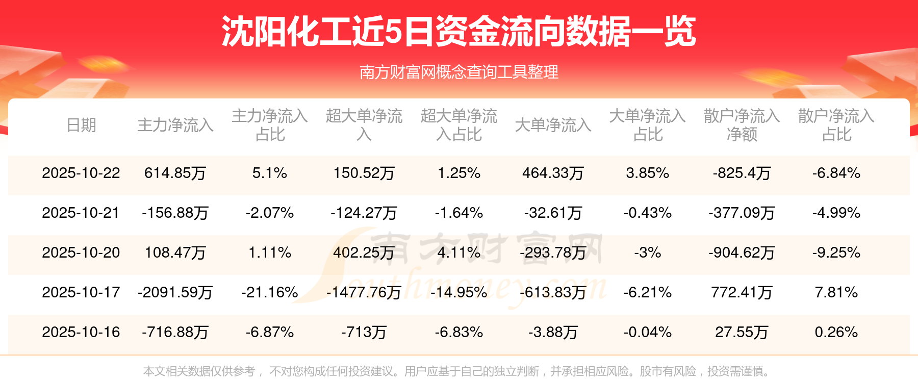 近5日资金流向一览见下表: