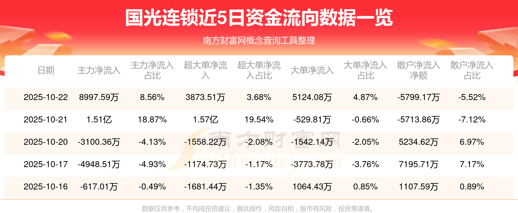 10月22日,国光连锁(605188)15时收盘涨10.02%,报22.390元,5日内股价上涨7.01%,成交额10.52亿元,换手率9.78%。