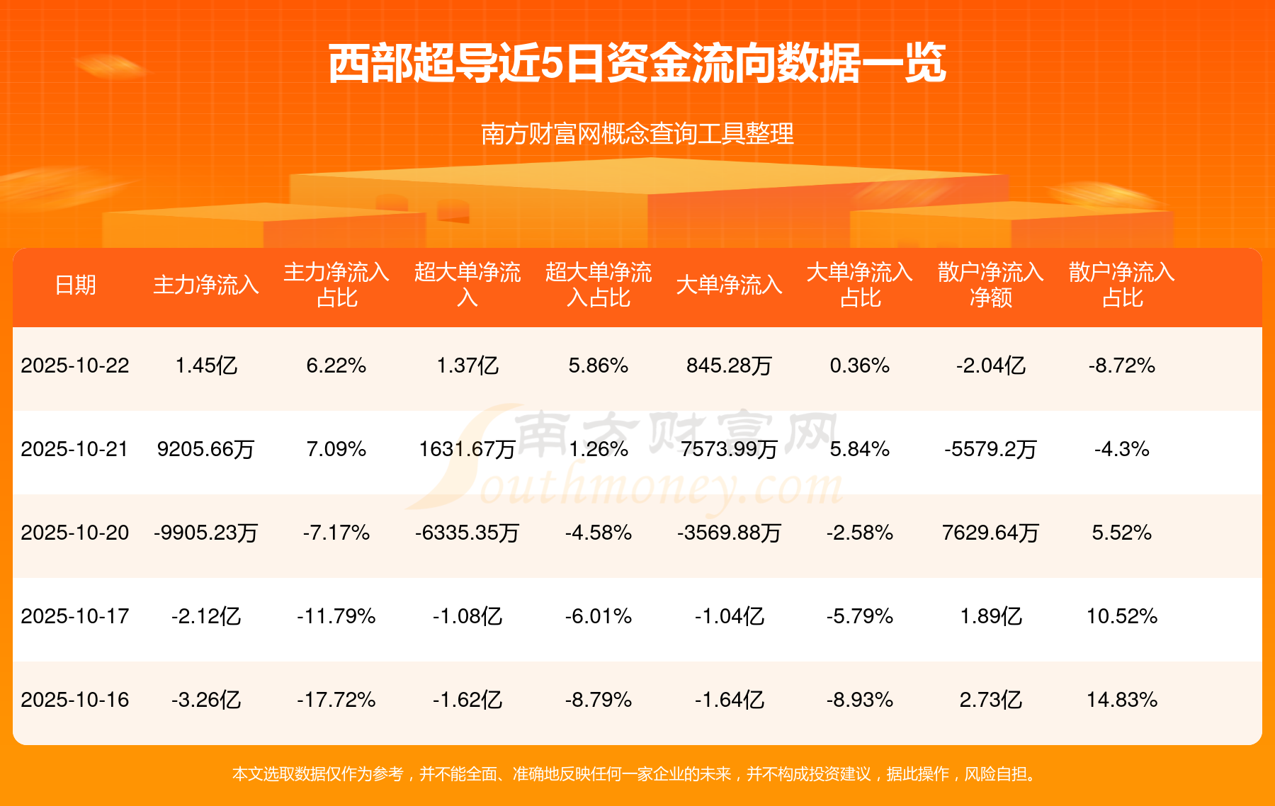 10月22日消息,西部超导10月22日主力资金净流入1.45亿元,超大单资金净流入1.37亿元,大单资金净流入845.28万元,散户资金净流出2.04亿元。