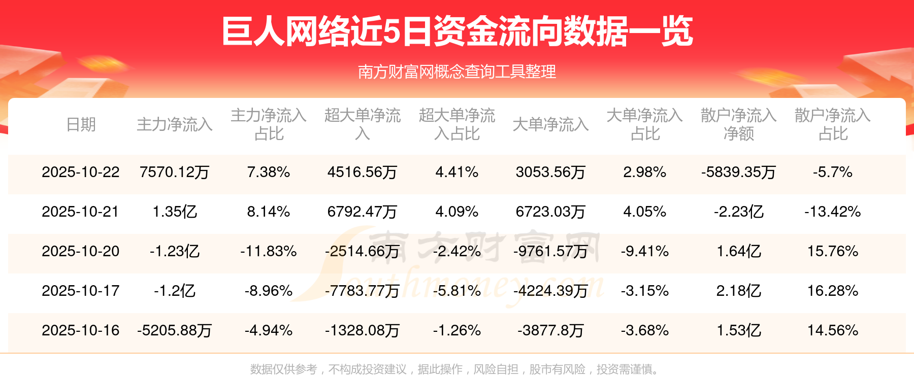 10月22日消息,巨人网络10月22日主力资金净流入7570.12万元,超大单资金净流入4516.56万元,大单资金净流入3053.56万元,散户资金净流出5839.35万元。
