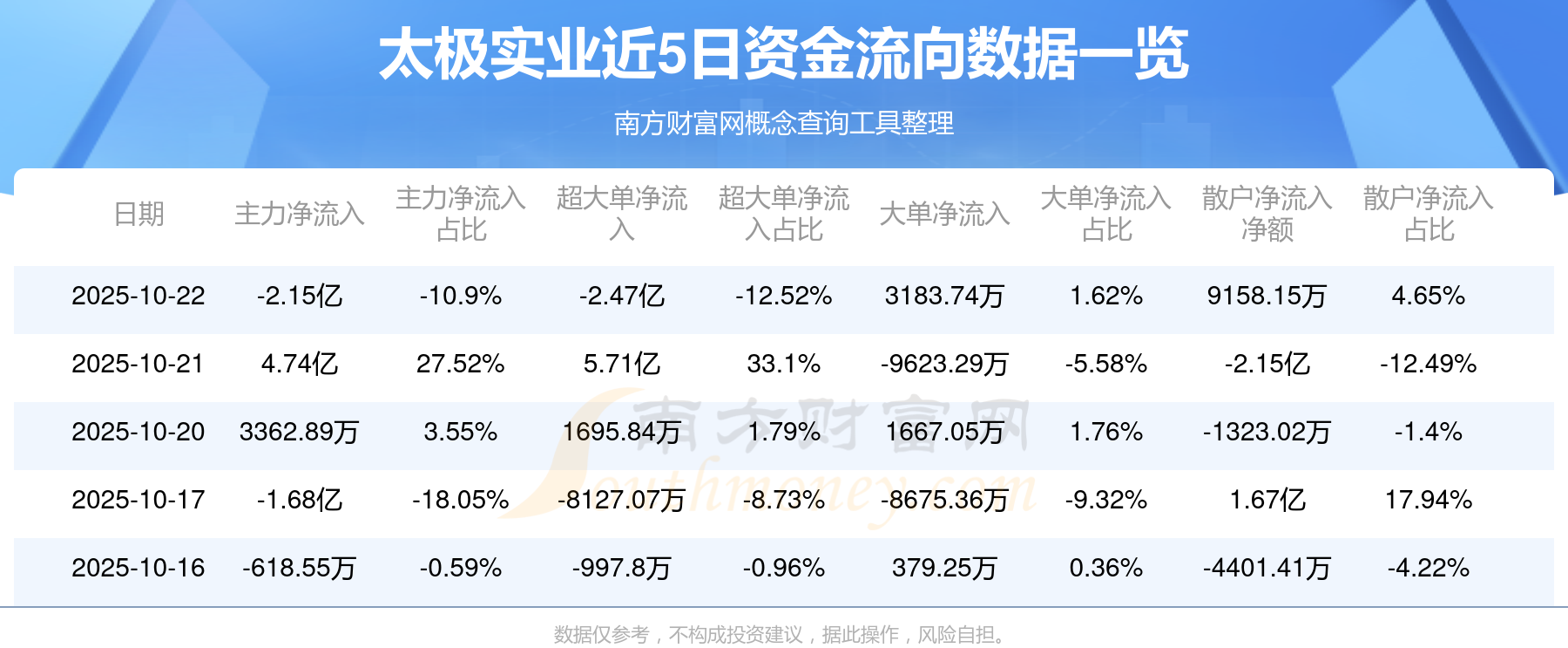 10月22日消息,太极实业10月22日主力资金净流出2.15亿元,超大单资金净流出2.47亿元,大单资金净流入3183.74万元,散户资金净流入9158.15万元。