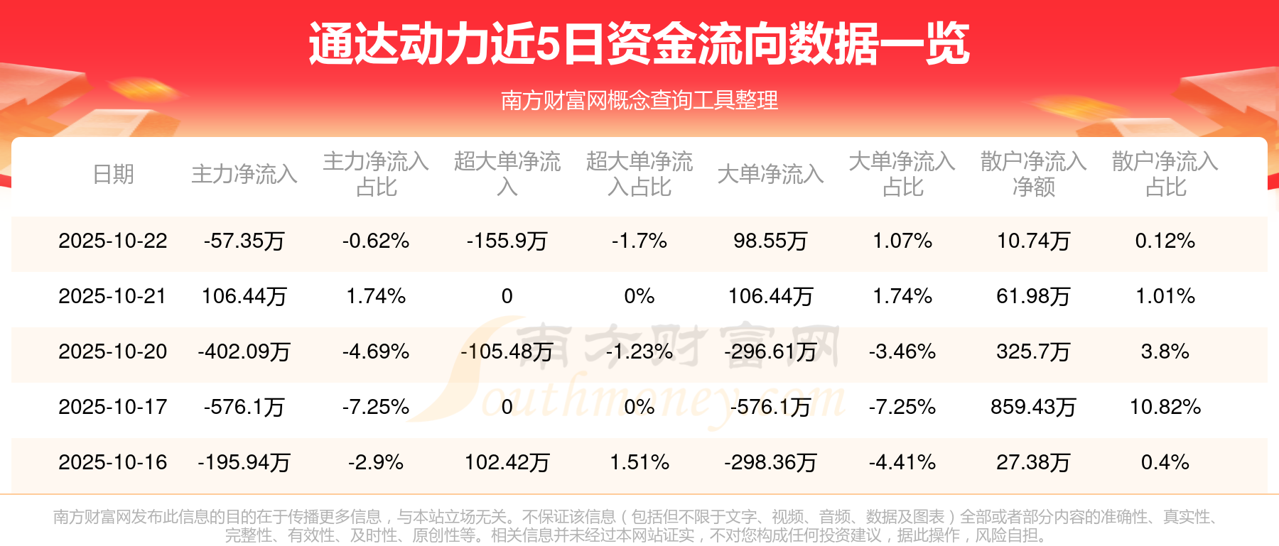 资金流向数据方面,10月22日主力资金净流流出57.35万元,超大单资金净流出155.9万元,大单资金净流入98.55万元,散户资金净流入10.74万元。