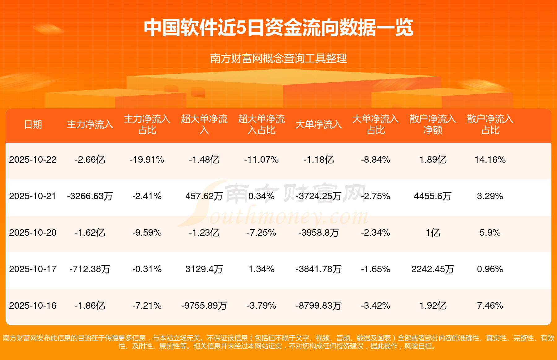 10月22日消息,中国软件10月22日主力资金净流出2.66亿元,超大单资金净流出1.48亿元,大单资金净流出1.18亿元,散户资金净流入1.89亿元。