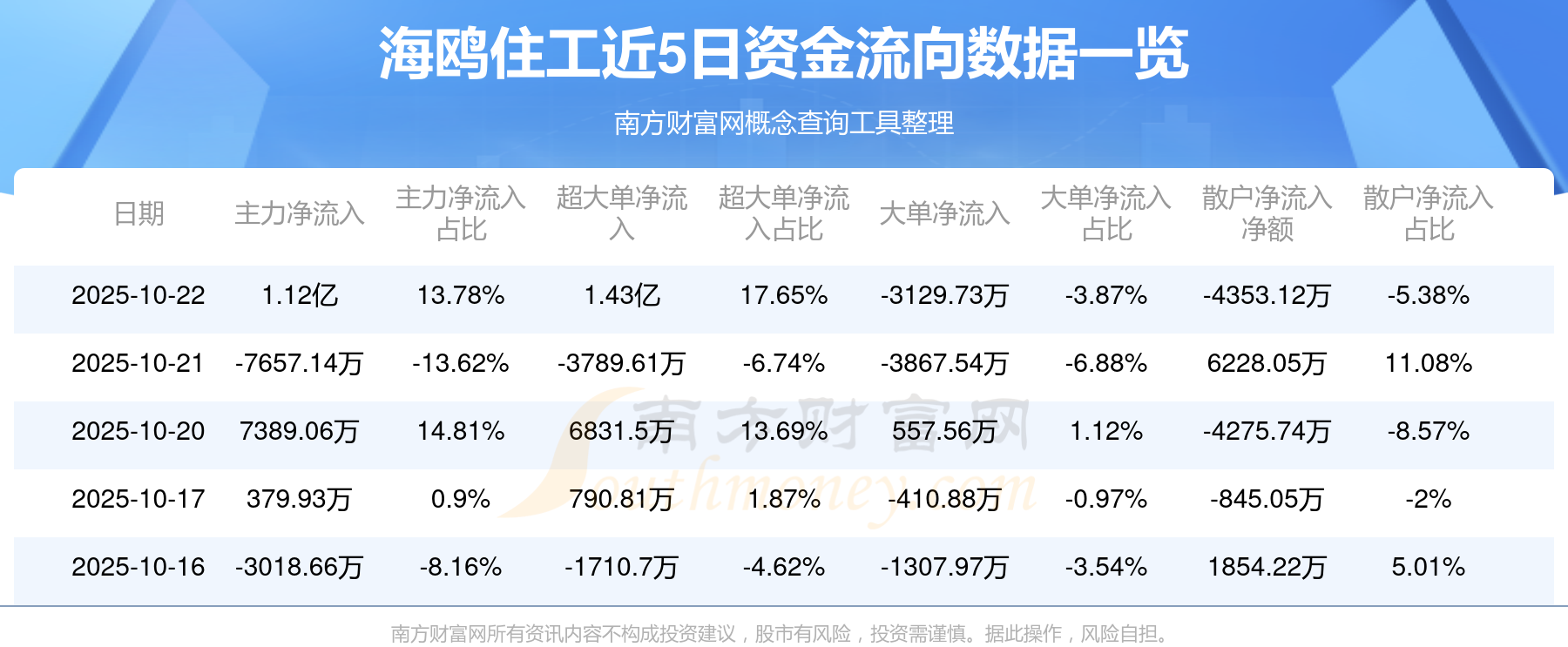 10月22日资金净流入1.12亿元,超大单净流入1.43亿元,换手率15.34%,成交金额4.54亿元。