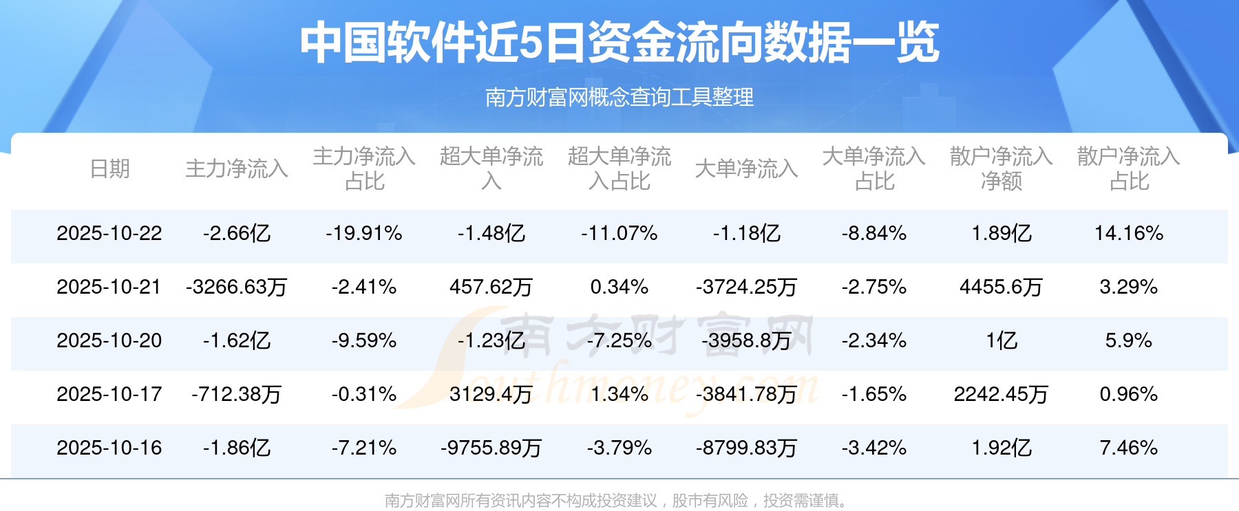 10月22日消息,中国软件10月22日主力净流出2.66亿元,超大单净流出1.48亿元,大单净流出1.18亿元,散户净流入1.89亿元。