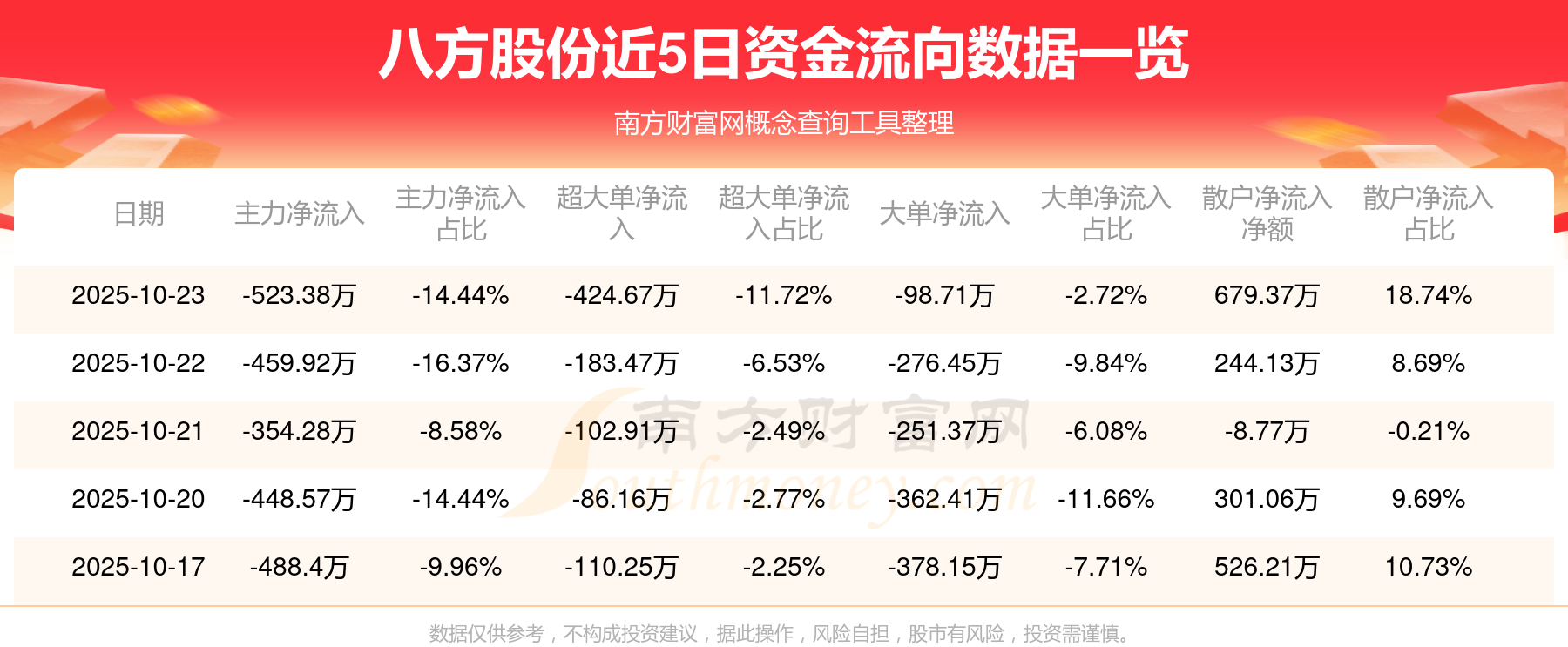 10月23日该股主力净流出523.38万元,超大单净流出424.67万元,大单净流出98.71万元,中单净流出155.99万元,散户净流入679.37万元。