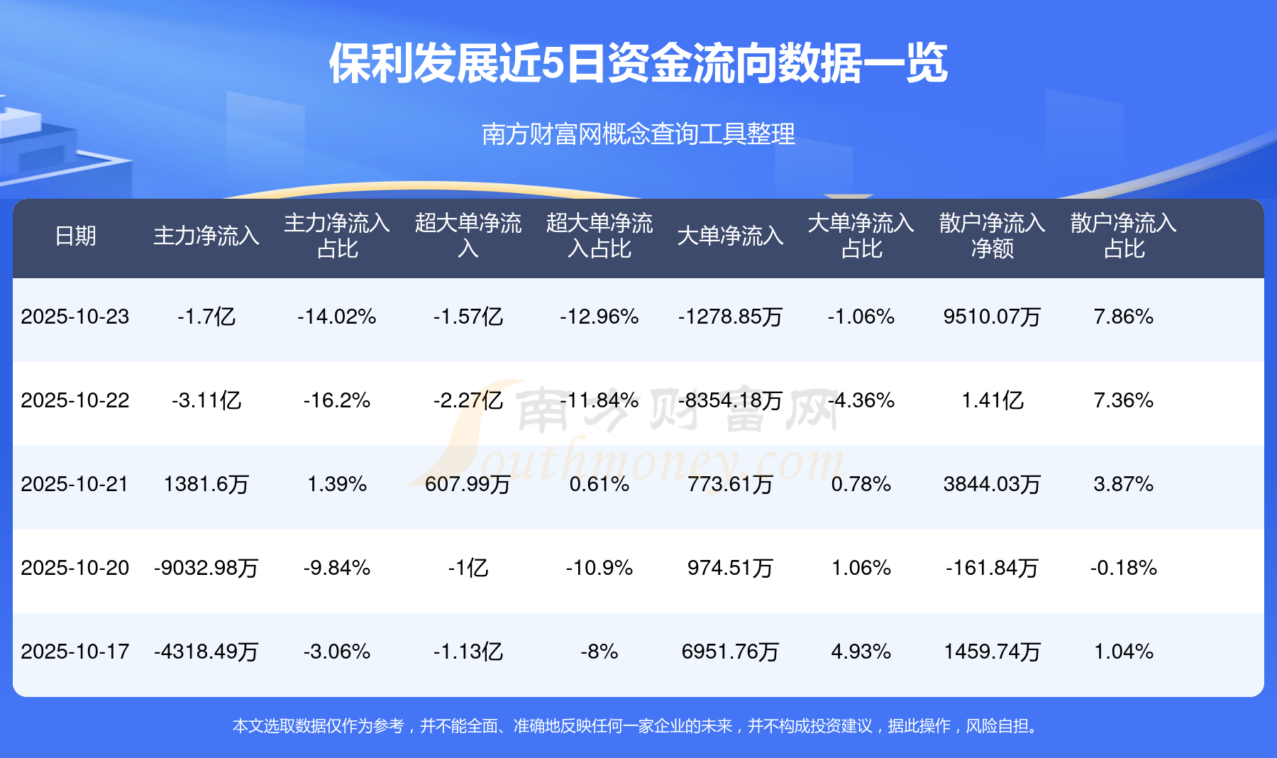 10月23日消息,保利发展主力净流出1.7亿元,超大单净流出1.57亿元,散户净流入9510.07万元。