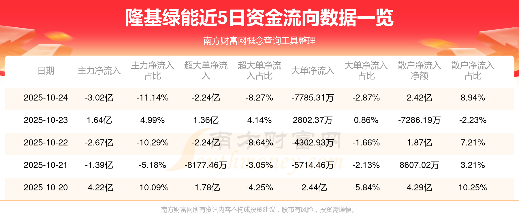 10月24日消息,隆基绿能资金净流出3.02亿元,超大单资金净流出2.24亿元,换手率1.88%,成交金额27.11亿元。