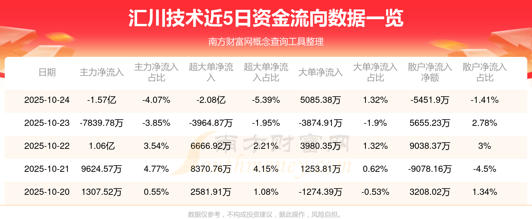 10月24日消息,汇川技术资金净流出1.57亿元,超大单资金净流出2.08亿元,换手率2.09%,成交金额38.56亿元。