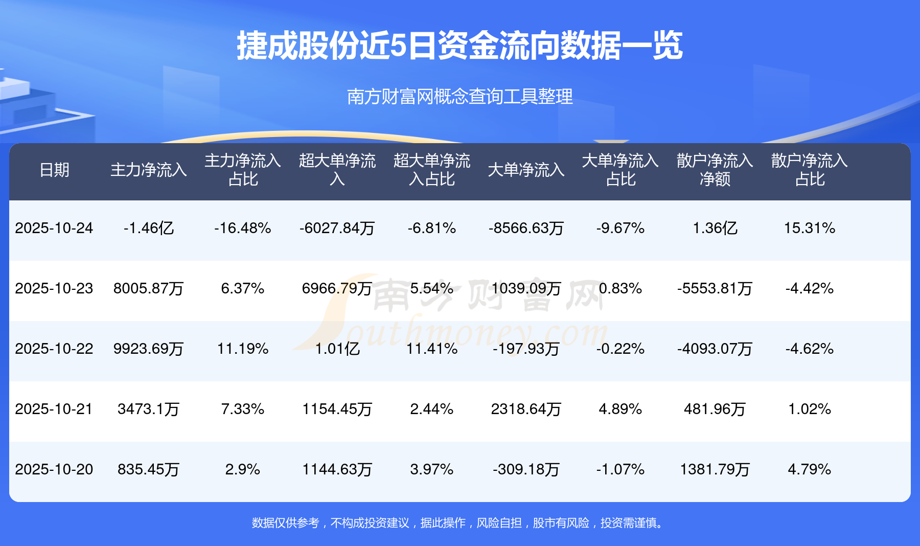 10月24日消息,捷成股份资金净流出1.46亿元,超大单净流出6027.84万元,换手率6.2%,成交金额8.85亿元。
