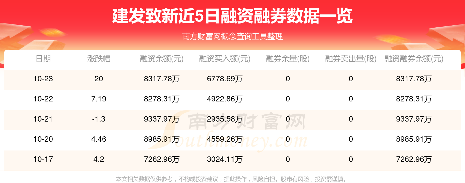 10月23日建发致新融券信息显示,融资方面,当日融资买入6778.69万元,融资偿还6739.22万元,融资净买额39.47万元。近5日融资融券数据一览见下表: