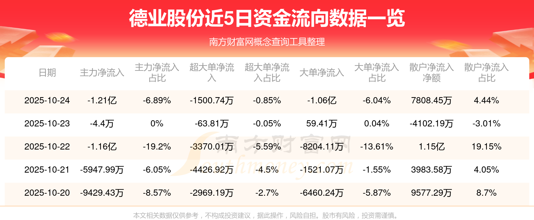 10月24日消息,德业股份10月24日主力净流出1.21亿元,超大单净流出1500.74万元,大单净流出1.06亿元,散户净流入7808.45万元。