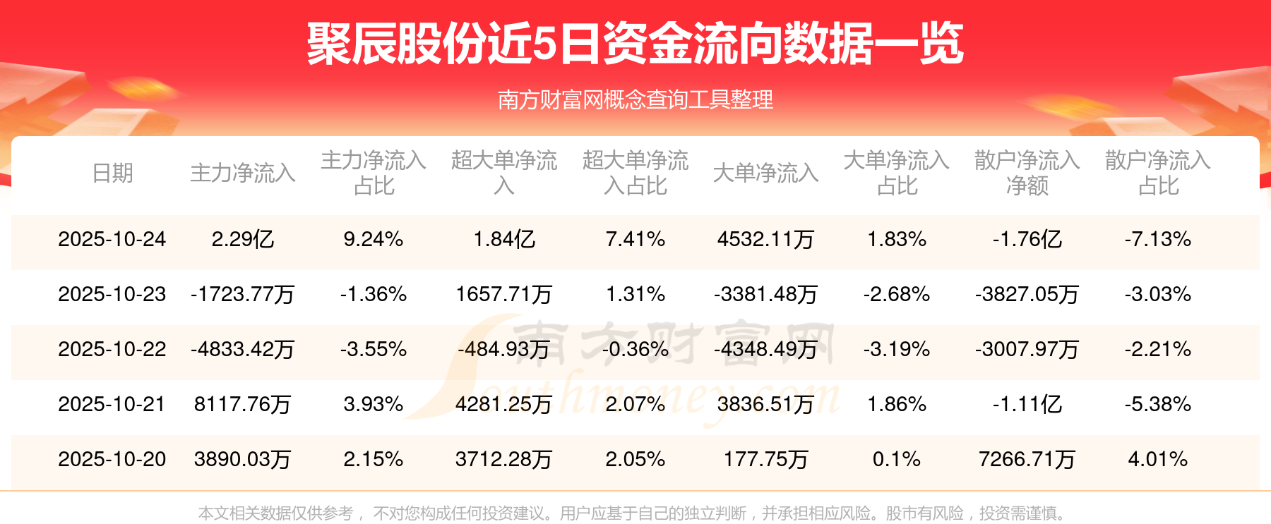 近5日资金流向一览见下表:
