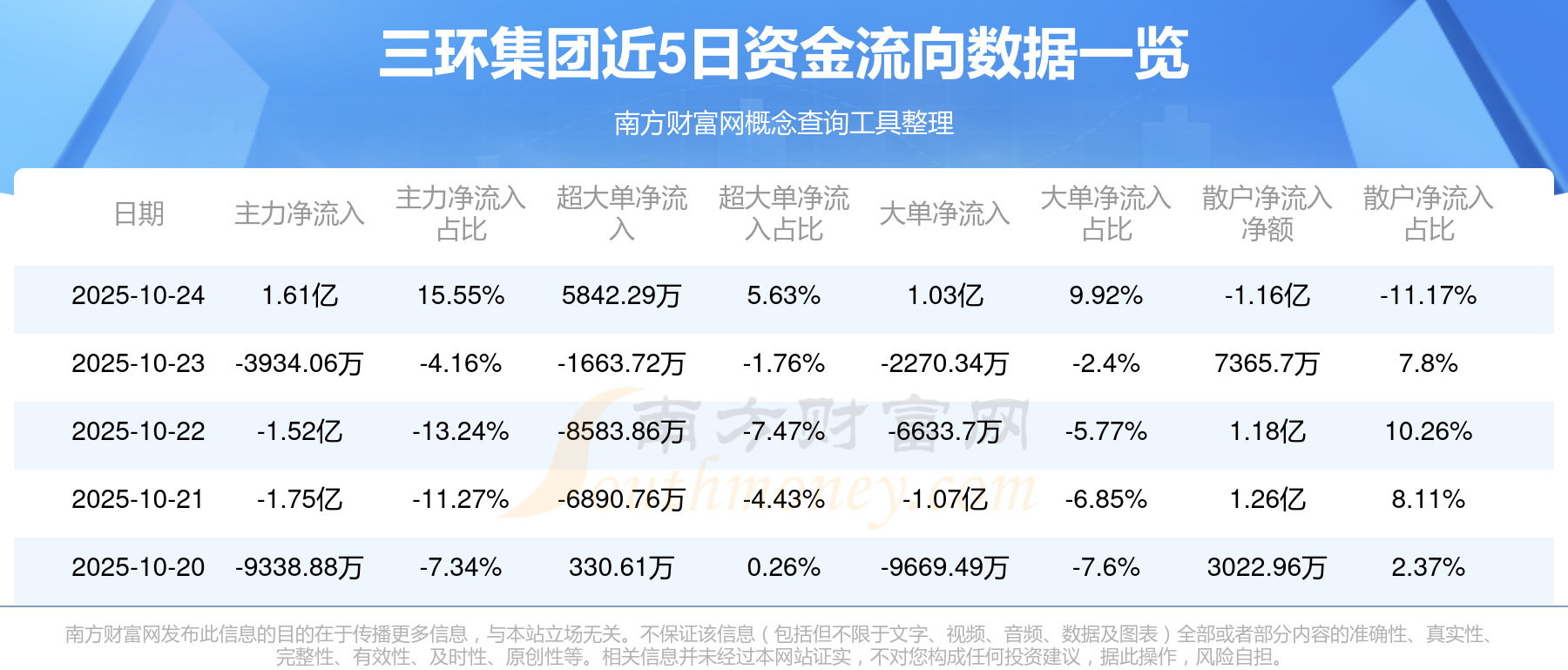 10月24日消息,三环集团主力资金净流入1.61亿元,超大单资金净流入5842.29万元,散户资金净流出1.16亿元。