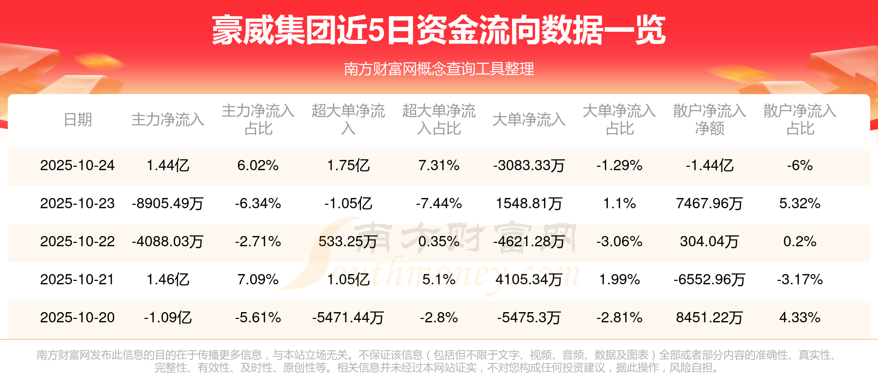 资金流向数据方面,10月24日主力资金净流流入1.44亿元,超大单资金净流入1.75亿元,大单资金净流出3083.33万元,散户资金净流出1.44亿元。