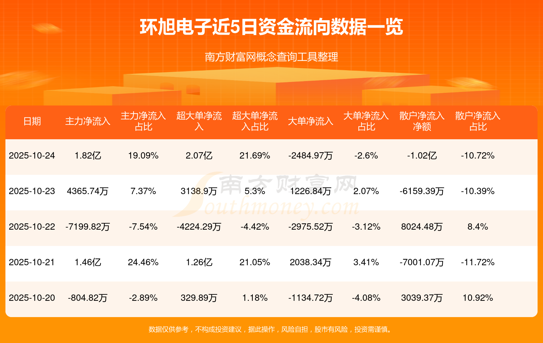 10月24日该股主力净流入1.82亿元,超大单净流入2.07亿元,大单净流出2484.97万元,中单净流出8000.3万元,散户净流出1.02亿元。