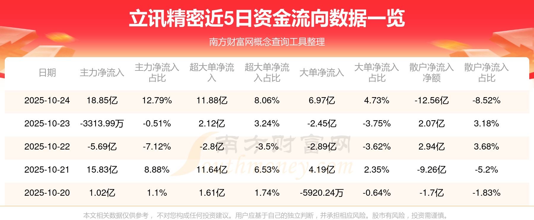 10月24日该股主力净流入18.85亿元,超大单净流入11.88亿元,大单净流入6.97亿元,中单净流出6.29亿元,散户净流出12.56亿元。