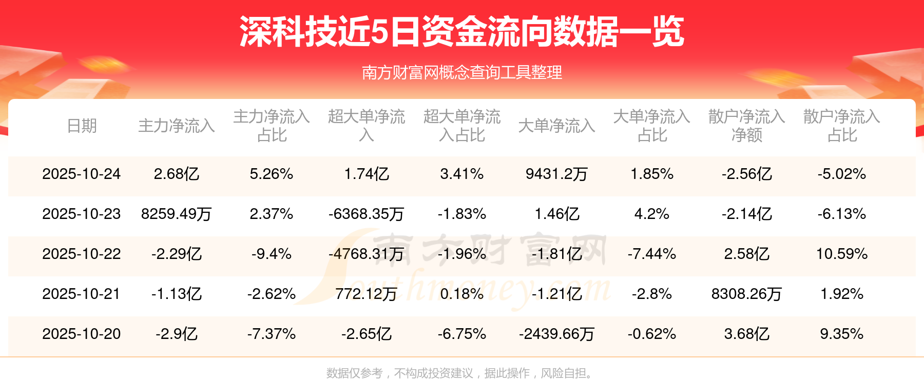 10月24日消息,深科技主力资金净流入2.68亿元,超大单资金净流入1.74亿元,散户资金净流出2.56亿元。