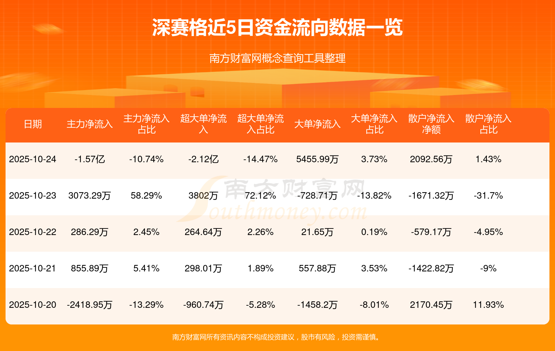 10月24日该股主力净流出1.57亿元,超大单净流出2.12亿元,大单净流入5455.99万元,中单净流入1.36亿元,散户净流入2092.56万元。