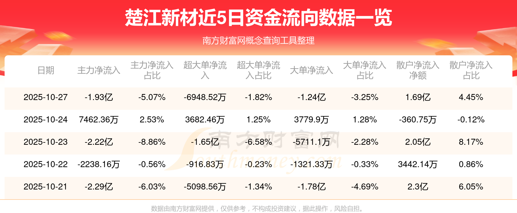 资金流向数据方面,10月27日主力资金净流流出1.93亿元,超大单资金净流出6948.52万元,大单资金净流出1.24亿元,散户资金净流入1.69亿元。