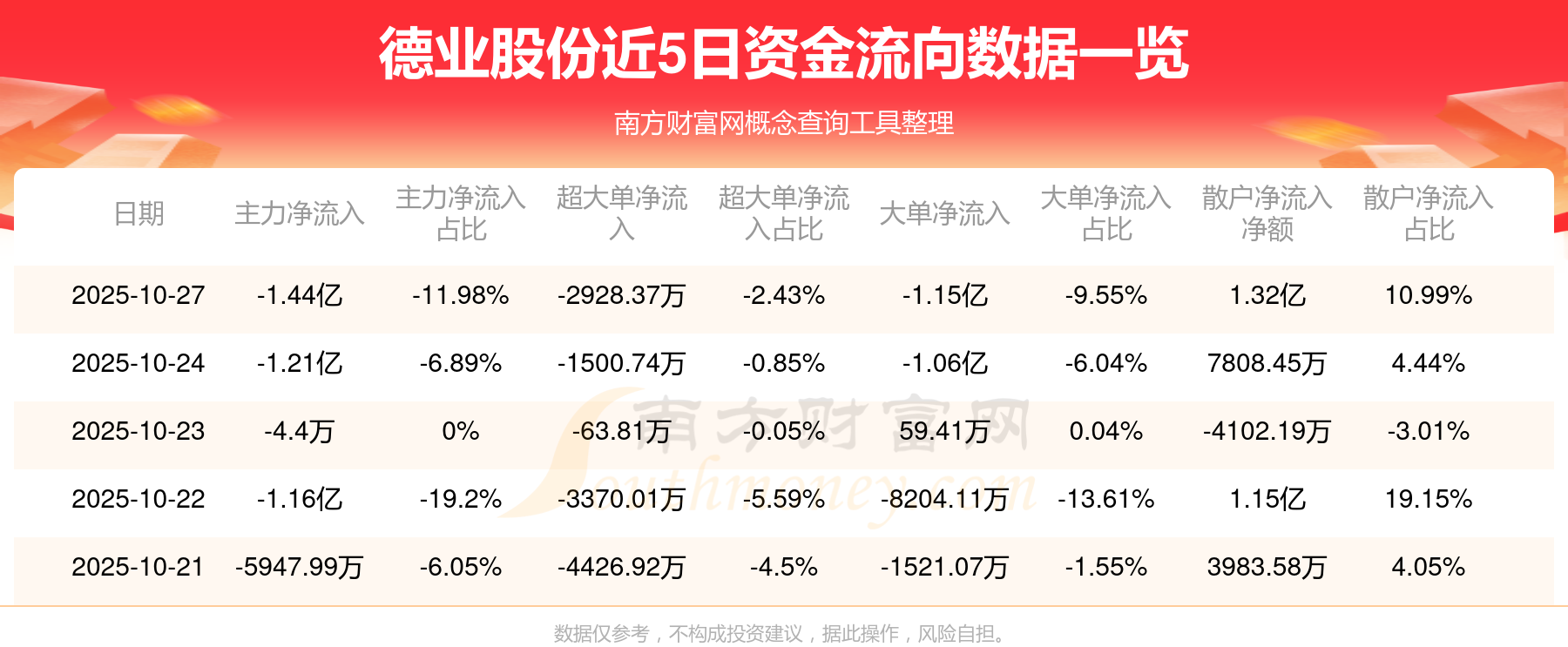 10月27日该股主力净流出1.44亿元,超大单净流出2928.37万元,大单净流出1.15亿元,中单净流入1195.85万元,散户净流入1.32亿元。